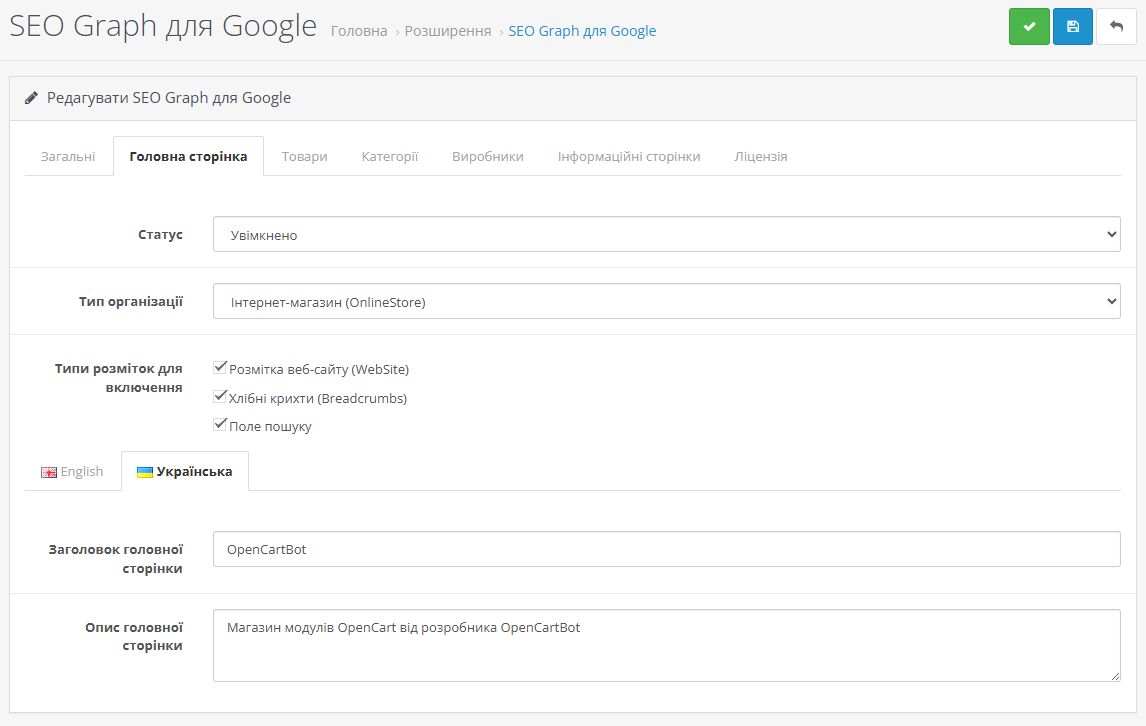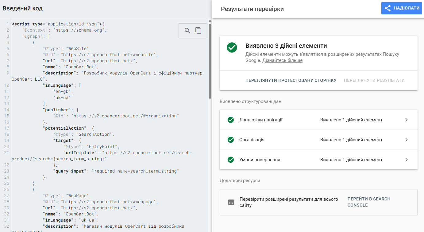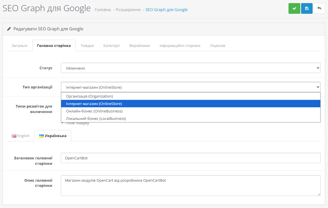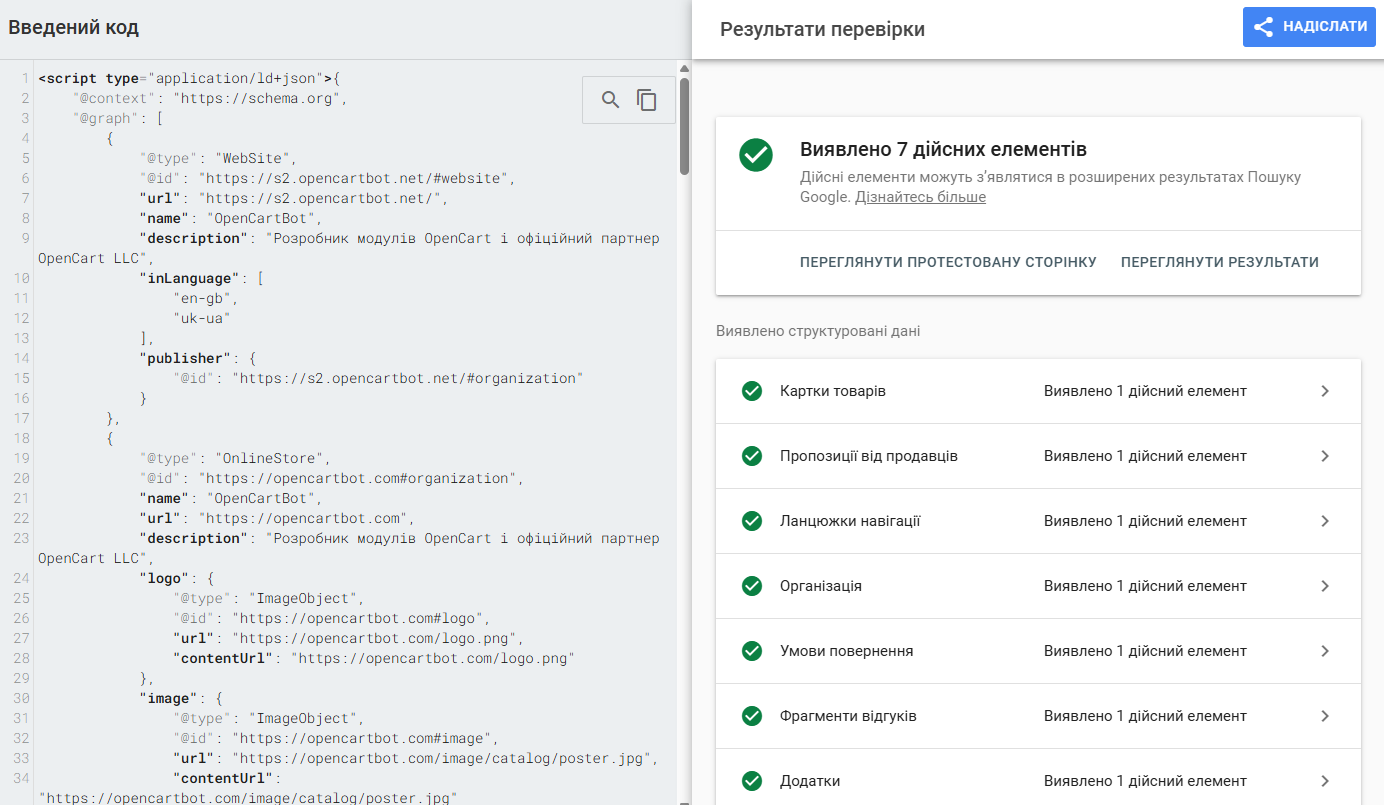 Комплексна мікророзмітка у вигляді JSON-LD Graph для OpenCart