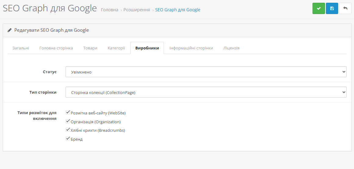 Ви самостійно вирішуєте, які елементи розмітки використовувати на кожному типі сторінок. Модуль дозволяє налаштувати інформацію про вашу компанію один раз, і вона автоматично використовуватиметься по всьому сайту. Можна вказати різні контактні точки для різних відділів, додати деталі про доставку та умови повернення товарів.